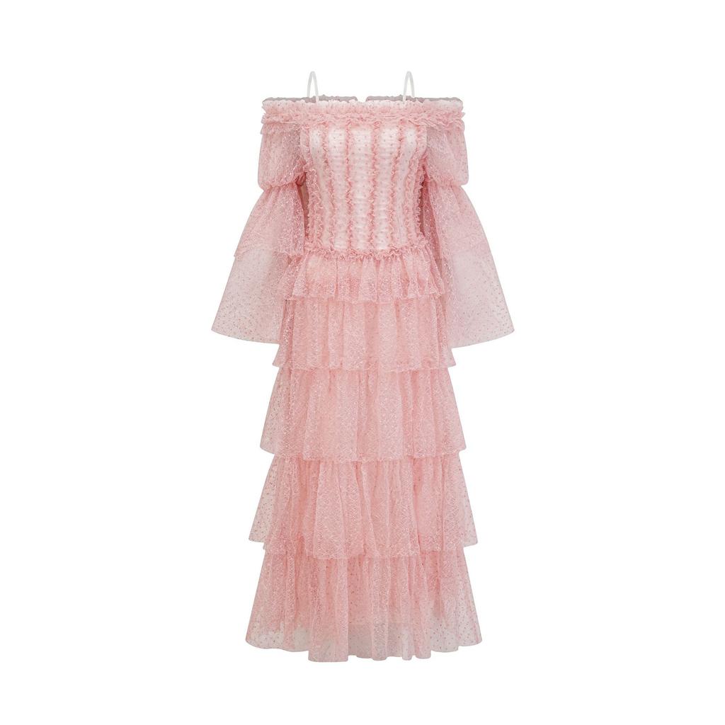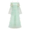 Women's New Sweet Off-shoulder Long-sleeved Green Cake Skirt Polka Dot One-shoulder Dress