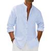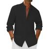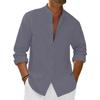 Męska Wiosenno-Letnia Koszula z Dekoltem Henley z Bawełny i Lnu, Jednolita, Lekka, w Stylu Plażowym, Wakacyjna, z Długim Rękawem