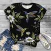 Damski letni T-shirt trendowy z nadrukiem ptaka w stylu retro, z krótkim rękawem, casualowe topy z nadrukiem