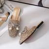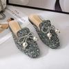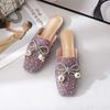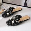 Duży rozmiar damskie buty cyrkonie kokarda baotou pół-klapki perłowe buty damskie letnie do noszenia na zewnątrz modne sandały do noszenia na zewnątrz wróżkowe