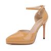 Nowe ultra wysokie obcasy wodoodporne stołowe szpiczasty nosek cienki obcas lakierowana skóra wydrążony tylny pasek damskie buty pojedyncze buty