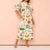 Rozmiar: L, talia: 100 cm, biodra: 104 cm, długość spódnicy: 131 cm, biust: 100 cm, długość rękawa: 40 cm, szerokość w ramionach: 38 cm