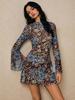 Wiosna Nowa Kobiety Temperament Modny Drukowany Sweter Klapy Pasek Sukienka