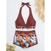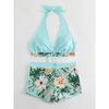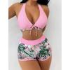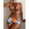 Fashion Printed Swimsuit Women Spliced Lace Up Sporty Surfing Bikini Set Bathing Suit Beachwear Swimwear Female Swimming Suits