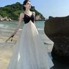 Sukienka retro na ramiączkach z odkrytymi ramionami dla kobiet na lato, seksowna, bez pleców, wakacje nad morzem, długa spódnica