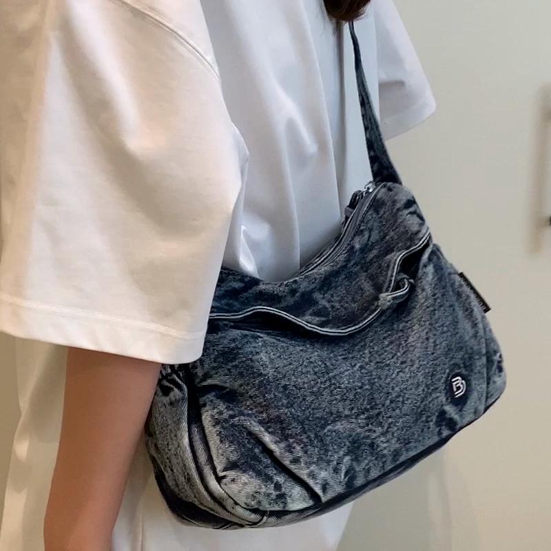 Torba Jeansowa Damska Torba Crossbody Duża Pojemność Dojazdy Torba na Ramię