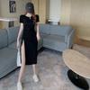 Nowa Letnia Sukienka z Sznurkiem i Rozcięciem dla Kobiet, Długość do Talii, Średnia Długość, Dopasowana, Obcisła Spódnica Okrywająca Biodra