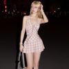 Modna Sukienka Halter w Kratę Kobiety Wiązana Dekolt V Bez Rękawów Mini Sukienki High Street Vestidos Letnia Odzież Plażowa