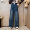 Girls' Jeans Wide Leg Pants Straight Leg Pants Loose Girls' Pants Children's Clothing Embroidered Pentagram Jeans Spring and Autumn Styles