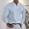 Wiosenno-jesienny prosty męski T-shirt z dekoltem w serek, oddychający, casualowy, z długim rękawem