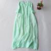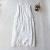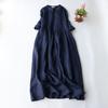 Lato Jesień Nowa Stójka Bawełna Len Fałdy Szlafrok Damski Rękaw 3/4 Luźna Casual Moda Vestidos Sukienka Damska Jednolity Kolor