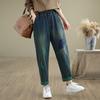 Retro Denim Harem Pants Women's Autumn Thin Patch Embroidered Design Elastic Waist Nine-point Casual Pants Loose Carrot Pants