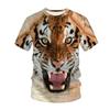 Koszulka męska z nadrukiem 3D z głową tygrysa, okrągłym dekoltem, casualowa, męska, z krótkim rękawem
