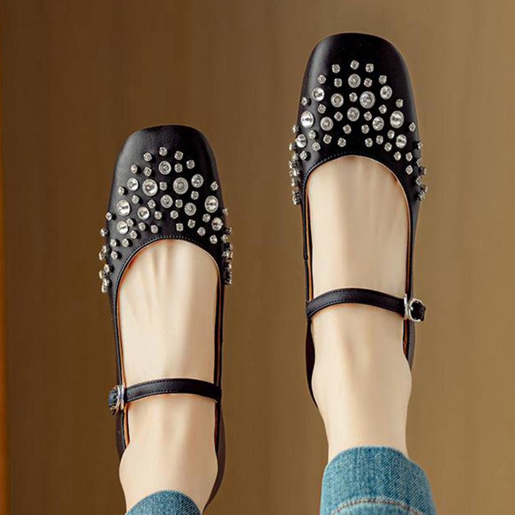 Krazing Pot Sheepskin Summer Autumn Size 40 Low Heels Crystal-studded Mary Janes Square Toe Gladiator Shallow Pumps