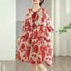 Krótki rękaw Plus rozmiar Bawełna vintage kwiatowe nowe sukienki dla kobiet swobodna luźna sukienka midi letnia