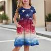 Dziecięca sukienka księżniczki z krótkim rękawem i okrągłym dekoltem, modna i codzienna sukienka z kieszenią na Dzień Niepodległości dla dziewczynki