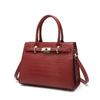 Ta torba ma wyrafinowaną, usztywnianą sylwetkę z szykownym wzorem wytłaczanym w skórę krowią, imitującym skórę krokodyla.. Posiada podwójne górne uchwyty, ozdobne metalowe zapięcie oraz elegancki, opływowy kształt, prezentując luksusowy i ponadczasowy wygląd.
