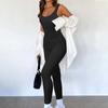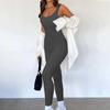 Damski kombinezon bez rękawów typu tank top, prążkowany, z okrągłym dekoltem, podnoszący biodra, wyszczuplający, seksowny kombinezon, kombinezon bez pleców