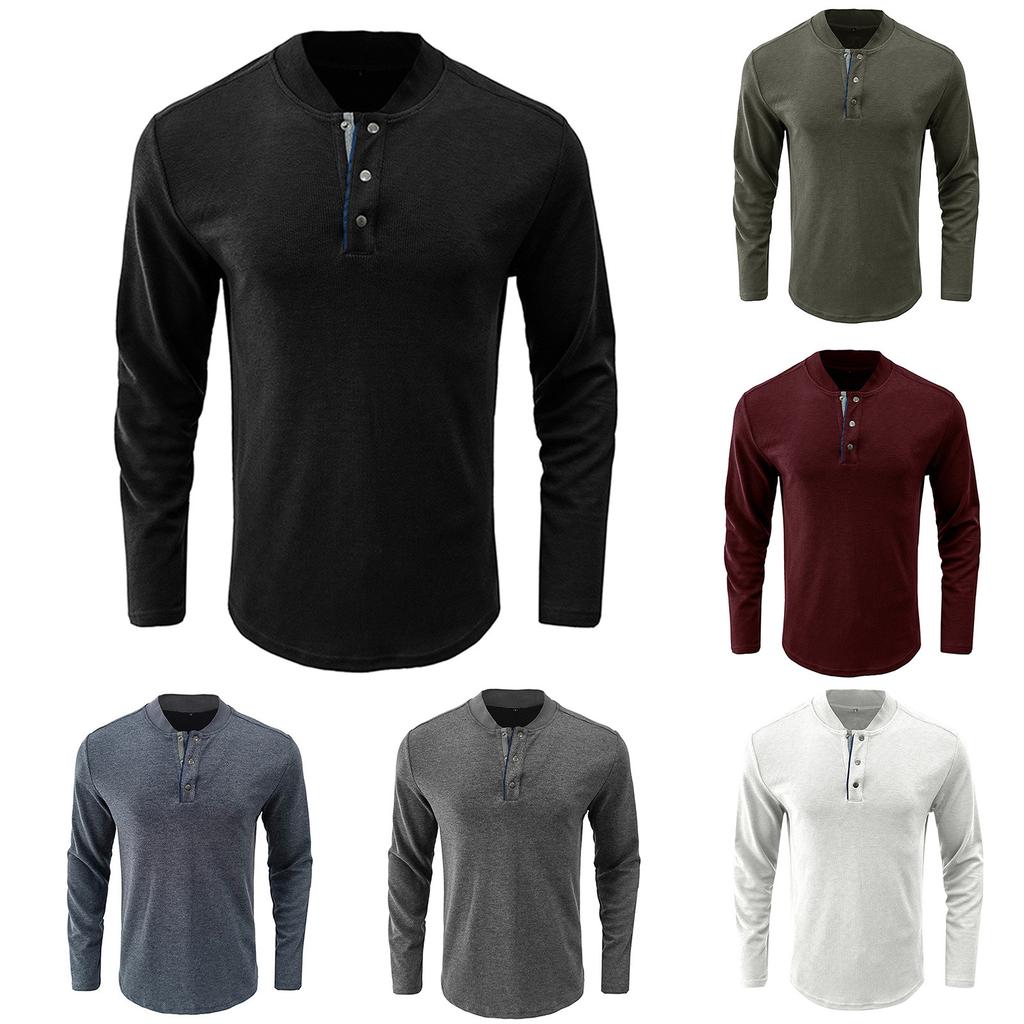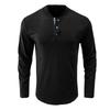 I Zimowy T-shirt Męski z Półotwartym Dekoltem Jednolity Kolor Długi Rękaw T-shirt Casualowa Koszulka Spodnia