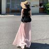 Women's Summer Iridescent Purple Elastic Waist A-Line Maxi Skirt - Draped Flowy Silhouette with High-Waist Slim Fit