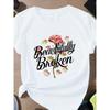 Women'S Plus Size Elegant V-Neck T-Shirt - Short Sleeve, Comfortable Print Top for Spring/Summer "Beautifully Broken" Heart Design, Casual Wear