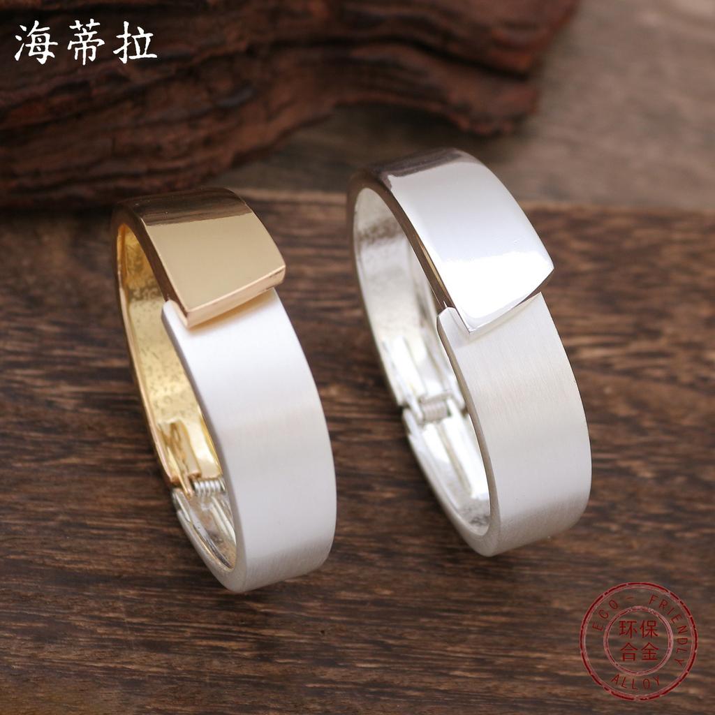New brushed wide-edge asymmetrical opening bracelet, exaggerated smooth brushed splicing women's bracelet