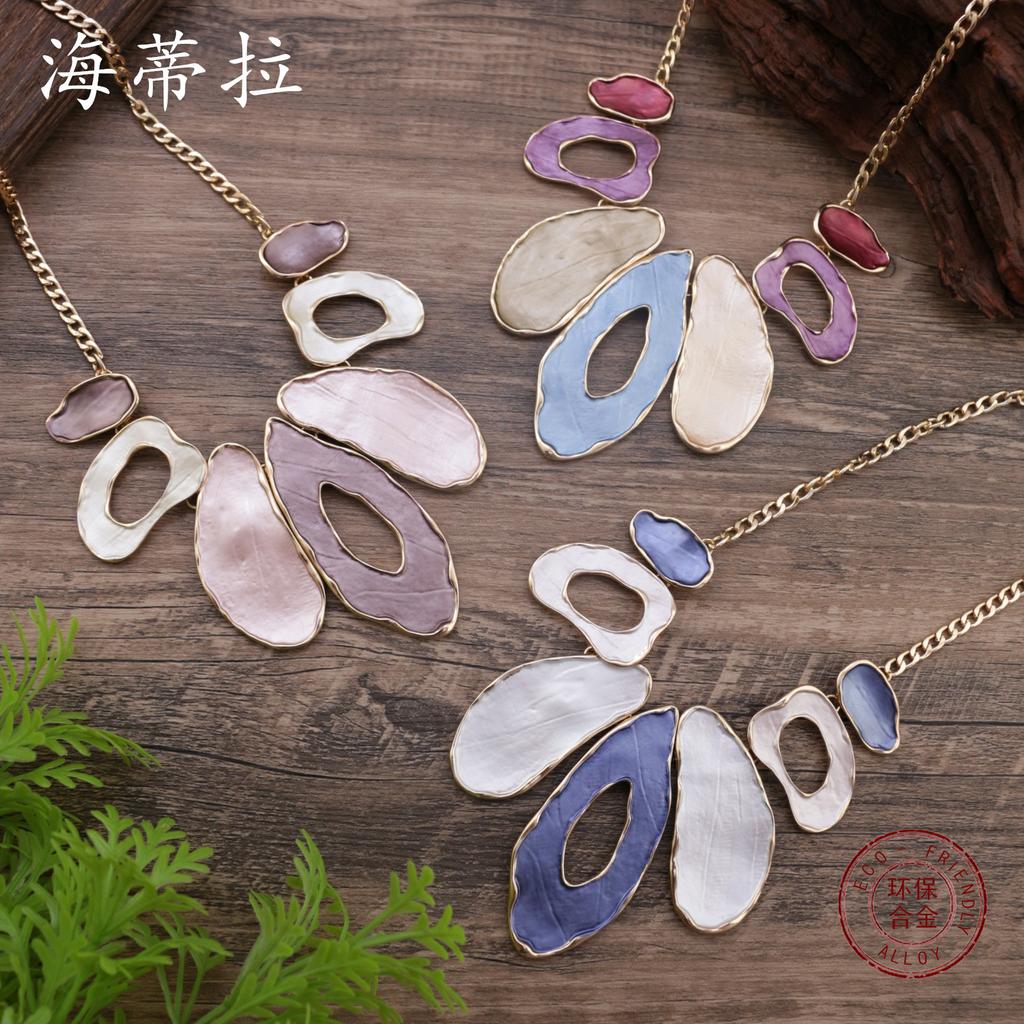 Color painting oil exaggerated geometric oval necklace, women's personalized hollow oval alloy necklace