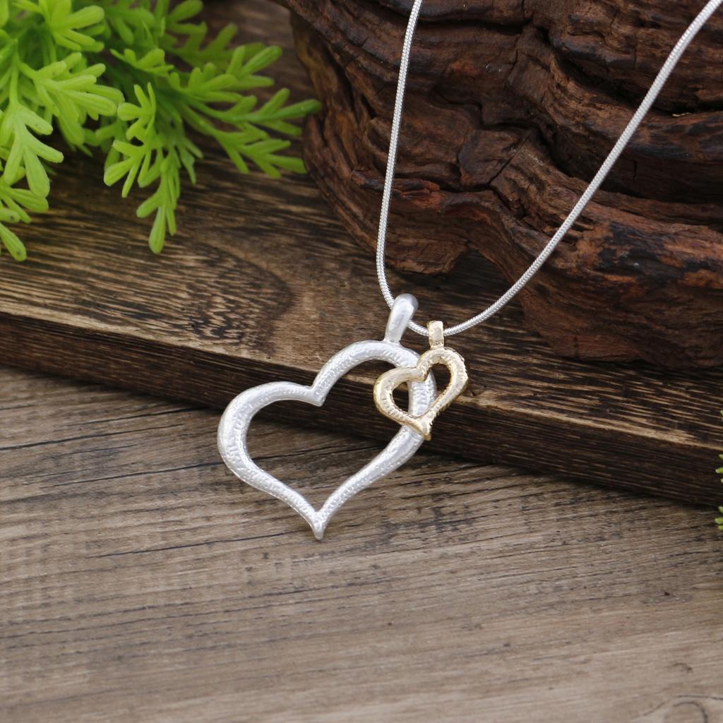 Nowy głupi kolor pusty wisiorek miłosny, damski prosty i zaawansowany zmysł głupie złoto głupie srebro w kształcie serca wszechstronny naszyjnik
