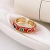 Enamel Devil's Eye Open Ring, Copper Inlaid Diamond Versatile Arabic Copper Ring for Men and Women