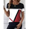Women's T Shirt Graphic Casual Short Sleeve Round Neck Regular Tops Daily Patchwork Print Red Blue Khaki Summer