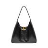 Ta torba ma stylowy, luźny kształt wykonany ze skóry bydlęcej drugiej warstwy.. Posiada charakterystyczny metalowy detal z logo, uchwyt górny i odpinany pasek na ramię. (80 cm). Skóra ma teksturowane, błyszczące wykończenie, nadające jej luksusowy i przyciągający wzrok wygląd.