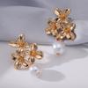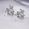 Floral temperament stud earrings Lily flower high-end earrings Women's imitation pearl geometric earrings