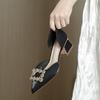 New bag head sandals women's medium heel pointed high heels thick heel fashion hollow single shoes