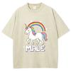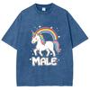 Letnia Koszulka Damska Bawełniana Zmywana Z Nadrukiem Tęczowego Jednorożca Oversize Luźna Krótki Rękaw Urocza Modna Wysokiej Jakości Góra