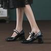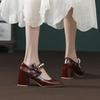 Nowe patentowe perłowe buty Mary Jane z kokardką, na lekki obcas, damskie, grubszy obcas, wysoki obcas, nie męczące stóp, buty na toast, buty zaręczynowe