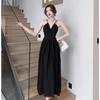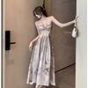 Francuska sukienka na ramiączkach dla kobiet na lato Nowy styl Dopasowana Bez pleców Średniej długości Rozkloszowana Spódnica w kwiaty