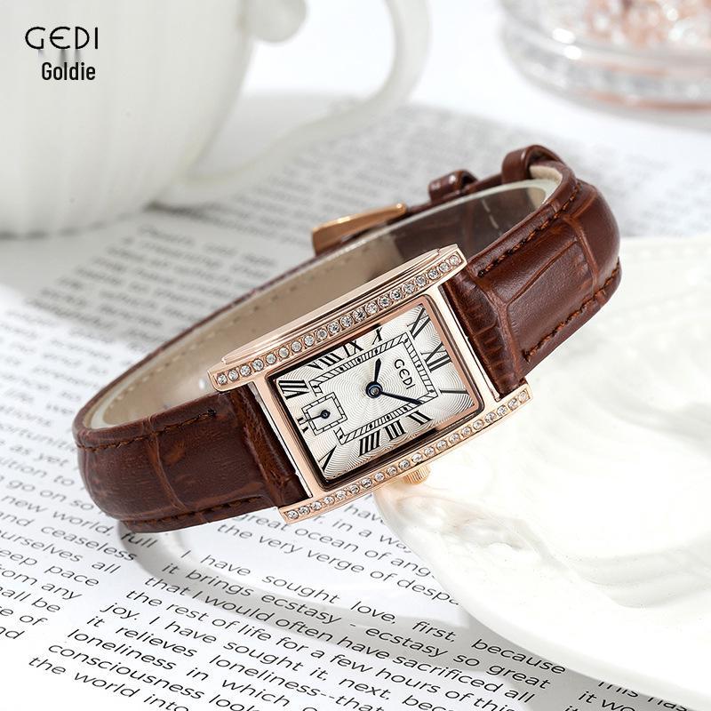 Zegarek kwarcowy damski Gedi w stylu retro, mały kwadratowy z paskiem
