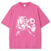 Japoński Styl Anime Portret Dziewczyny Kwiat Wiśni Damski T-Shirt Unisex Luźny Oversize Krótki Rękaw Design Sprany Top