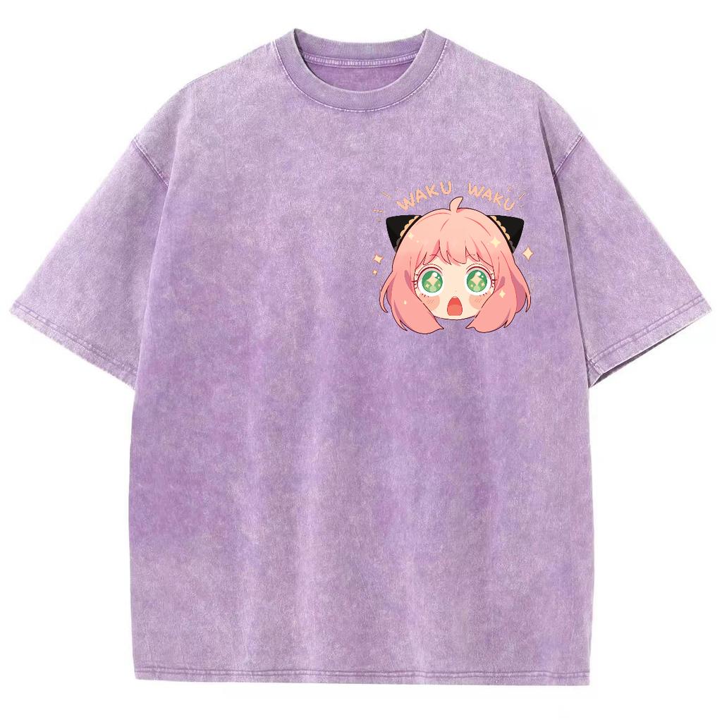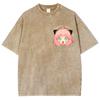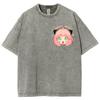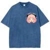 Vintage Casual Prany Denim Luźny T-shirt Kreskówkowy Nadruk Postaci Anime Streetowa Moda Amerykańska Wygodny Design