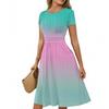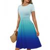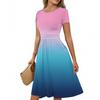 Damska codzienna moda okrągły dekolt plisowany krótki rękaw gradientowa spódnica A-line sukienka midi