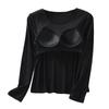 Poczuj komfort i styl w tej damskiej koszulce z długim rękawem, idealnej do jogi lub jako elegancka warstwa bazowa w Twojej garderobie.. Wykonane z miękkiego materiału modalowego, zapewnia gładkie i jedwabiste uczucie na skórze.. Okrągły dekolt dopełnia design, a wbudowane bezprzewodowe miseczki zapewniają wsparcie i korzystny kształt bez potrzeby dodatkowej bielizny.. Ta wyszczuplająca koszulka bez wysiłku łączy funkcjonalność z nowoczesną estetyką, co czyni ją idealnym wyborem zarówno do aktywności, jak i na co dzień.