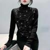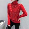 Damski dopasowany sweter z dzianiny z golfem i hot-dżetami na jesień/zimę 2024