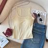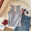 Damski szary koronkowy patchworkowy top cami bez pleców z wkładkami na biust