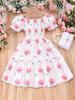 Dziewczęca sukienka codzienna z bufiastymi rękawami, sukienki księżniczki z nadrukiem dla dzieci, ubrania letnie
