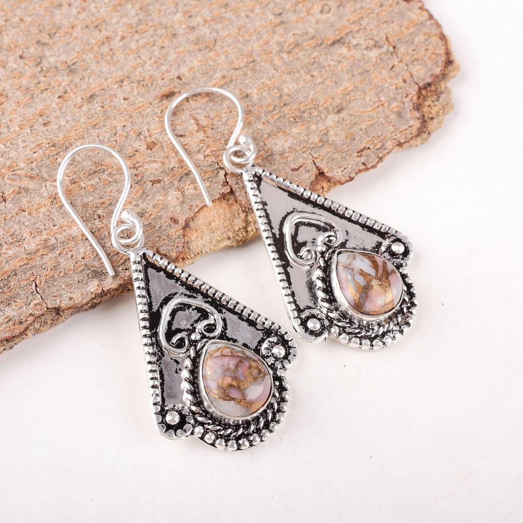 Różowy Opal Turkusowe Kolczyki, Ręcznie Robione Kolczyki z Kamieni Szlachetnych, Kolczyki z Litego Srebra Próby 925 Antyczna Biżuteria, Na Prezent Zaręczynowy