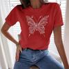 Damski T-shirt z krótkim rękawem i okrągłym dekoltem, top z nadrukiem 3D motyla