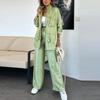 Damskie Codzienne Kieszenie Luźne Stroje Sportowe Moda Stójka Płaszcze i Długie Spodnie Garnitury Elegancki Długi Rękaw Jednolity Kolor 2-częściowe Zestawy