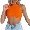 Damski Bezrękawnikowy Krótki Top z Prążkowanej Dzianiny - Seksowny Styl z Okrągłym Dekoltem