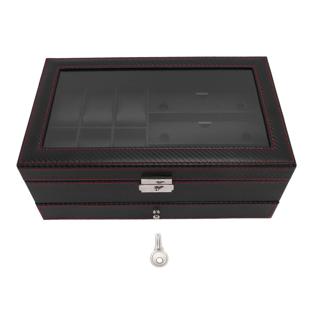 Pudełko na zegarki Etui na biżuterię Włókno węglowe Skóra PU 2 warstwy 6 przegródek Pudełko na zegarki i organizer na okulary przeciwsłoneczne