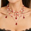 Gothic bat blood-stained fringed clavicle multi-layer necklace, niche beaded blood-dripping handmade necklace women